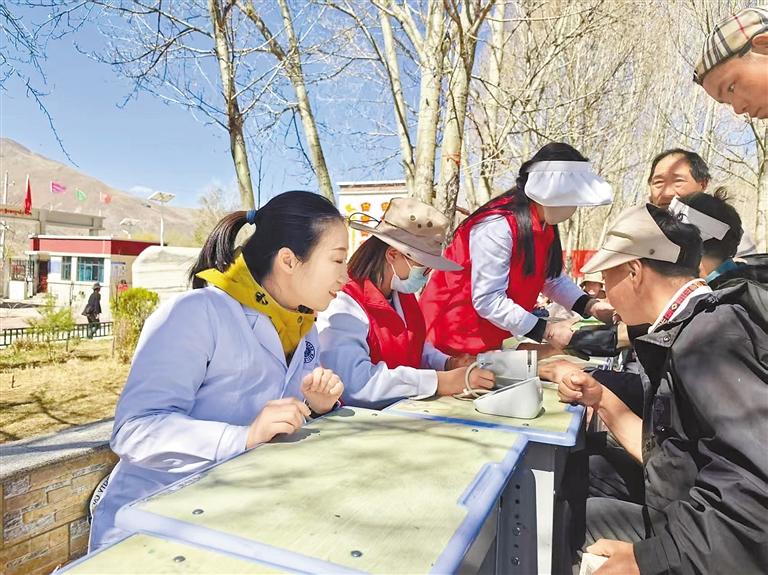 圖為北京市門(mén)頭溝區(qū)援藏醫(yī)療隊(duì)正在古榮鎮(zhèn)開(kāi)展義診活動(dòng)。本報(bào)記者 盧文靜 攝