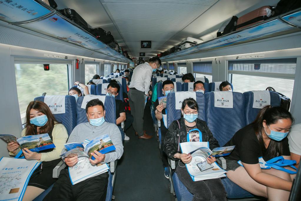 就在“藏源山南”高鐵冠名列車發(fā)車之際,山南旅發(fā)局及華鐵傳媒工作人員一同登上冠名列車,在長沙到廣州路段全程與近300名乘客展開趣味互動(dòng),發(fā)放山南旅游宣傳資料和山南特色紀(jì)念品共600余份。一路上乘客積極響應(yīng),紛紛向工作人員咨詢赴山南旅游事宜并爭相掃碼關(guān)注山南旅游微信號公眾號,許多乘客當(dāng)即表示,“藏美之行”將從“藏源山南”開啟。