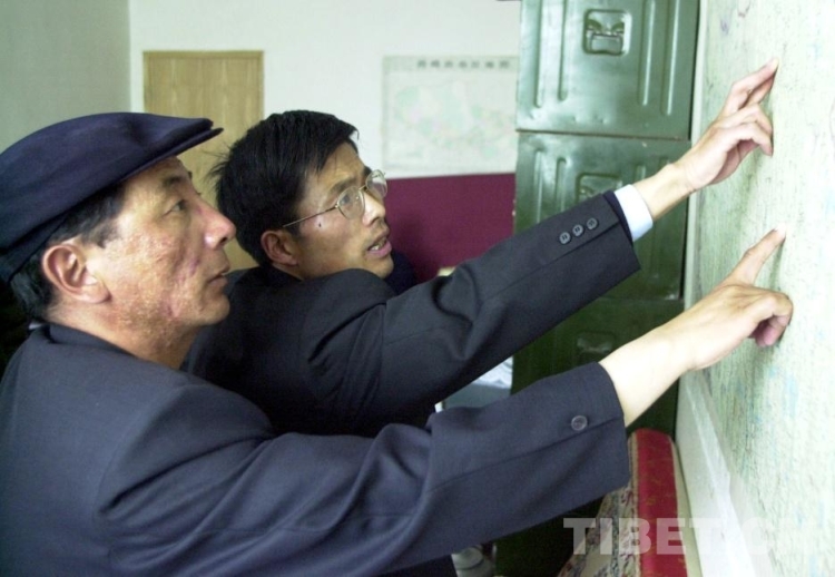 這是時任雙湖特別區(qū)(現(xiàn)雙湖縣)區(qū)委書記的范科創(chuàng)(右)與副區(qū)長珠巨(左)在研究當(dāng)?shù)氐慕?jīng)濟發(fā)展規(guī)劃。為了無人區(qū)開發(fā)事業(yè),范科創(chuàng)在這里默默奉獻(xiàn)了15個春秋。1986年,他被西藏自治區(qū)黨委授予“優(yōu)秀黨務(wù)工作者”榮譽稱號(唐召明2001年攝)