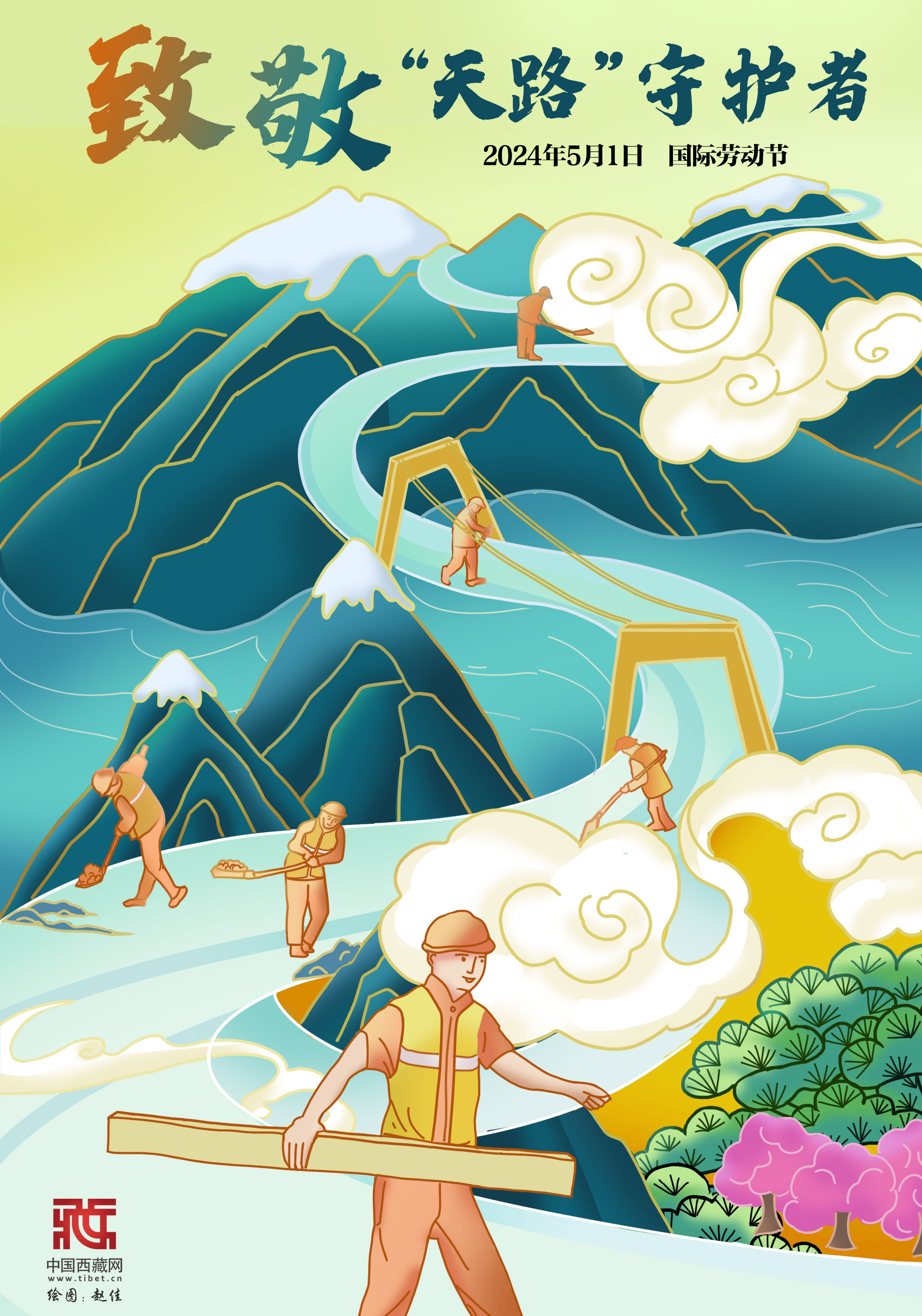 高原春光美,勞動(dòng)正當(dāng)時(shí)。有一種理想,于高山厚土間長存;有一種精神,在“世界屋脊”上閃耀;有一群人,用勞動(dòng)寓平凡以偉大的定義。他們是常年駐守青藏公路一線的武警官兵、交警、護(hù)路工、巡護(hù)員群體,年復(fù)一年地在不為人知的平凡崗位傾注勞動(dòng)心血,以血肉之軀鑄就青藏線道路交通安全的“鋼鐵長城”。