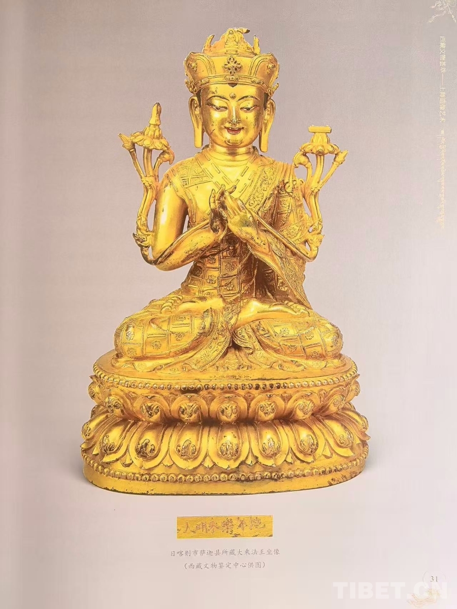 圖為《西藏文物薈萃:上師造像藝術》一書中日喀則市薩迦縣所藏大乘法王坐像 吳雨初翻拍