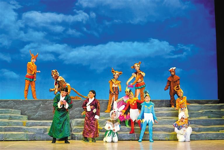 記者在連續(xù)幾日的排練現(xiàn)場看到,舞臺上的孩子們,用稚嫩的童聲唱腔、活靈活現(xiàn)的身段、活潑細膩的表演,將一個經(jīng)久不衰的藏地古老傳說——頓珠和頓月兄弟倆的故事,向觀眾娓娓道來。