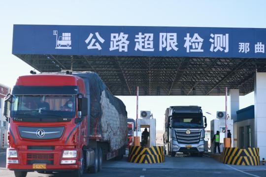 貨車正在通過那拉高速公路那曲超限檢測站。(西藏自治區(qū)交通運(yùn)輸廳供圖)