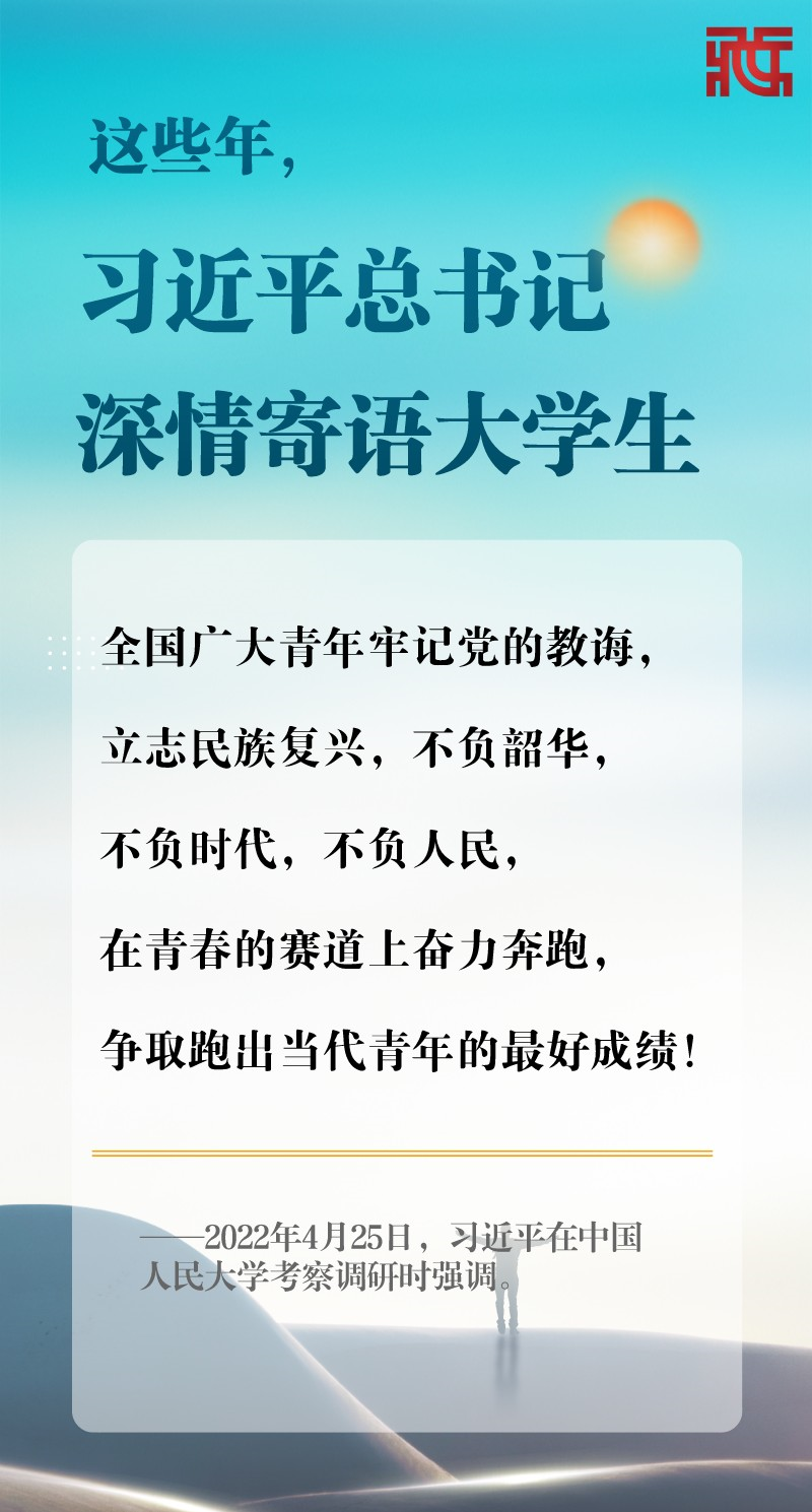 在五四青年節(jié)即將到來之際,中共中央總書記、國家主席、中央軍委主席習近平4月25日上午來到中國人民大學考察調(diào)研。習近平總書記一直特別關心大學生們的學習和成長,曾多次走到大學生中間,同他們談人生、話理想。