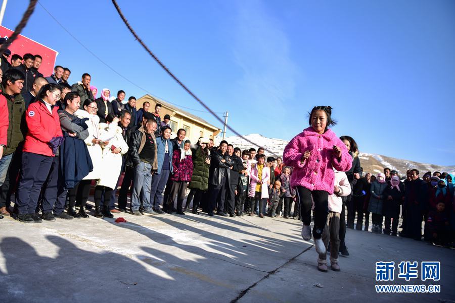 在海東市互助縣丹麻鎮(zhèn),村民們在參加集體跳繩比賽。新華社記者 吳剛 攝