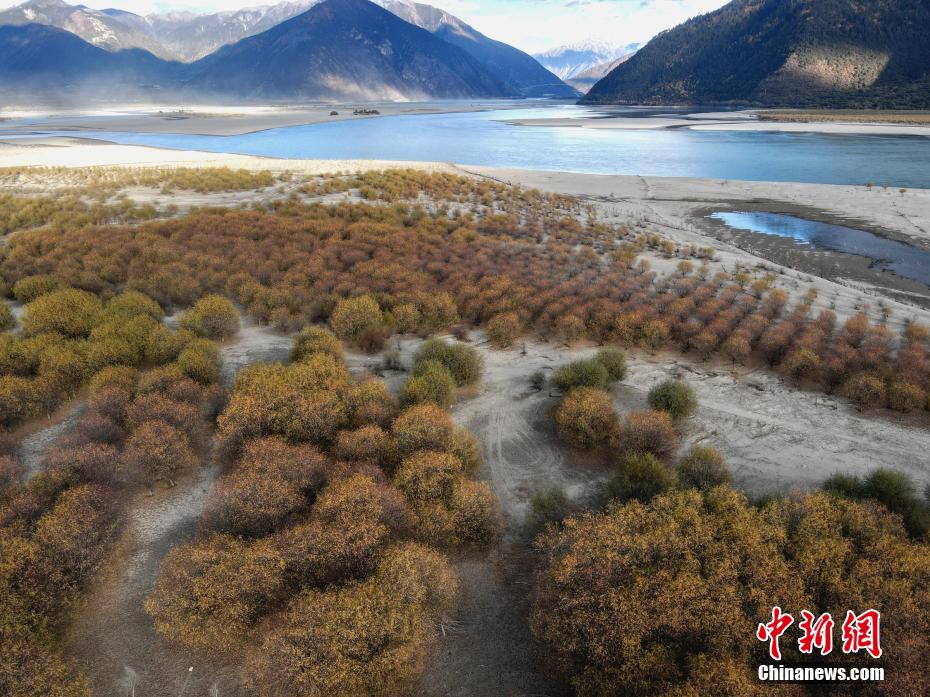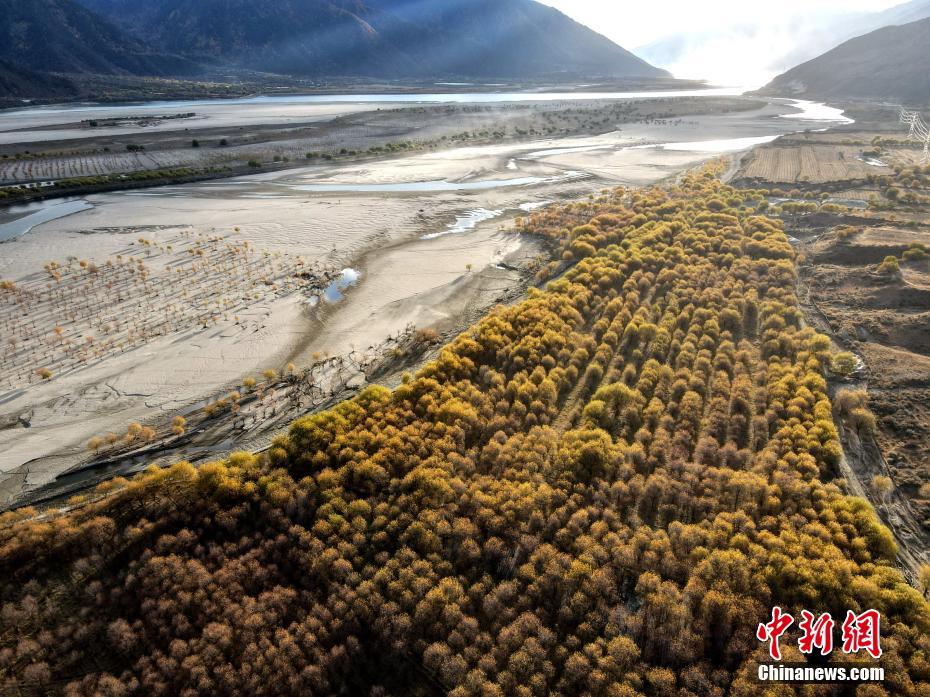 雅魯藏布江位于西藏自治區(qū)境內,是世界海拔最高的大河之一。近日,記者途徑雅魯藏布江看到,深秋時節(jié),兩岸的柳樹林變得金黃一片,峽谷間秋色宜人,美如畫卷。值得一提的是,在秋冬兩季的日落時分,傳說中“十人九不遇”的南迦巴瓦峰變得相對容易看到“日落金山”的景象,十分壯觀。江飛波 攝