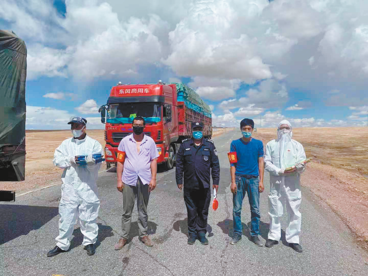 五道梁保護(hù)站的隊(duì)員們攔住過往車輛,為前往卓乃湖產(chǎn)仔的藏羚羊打開生命通道。