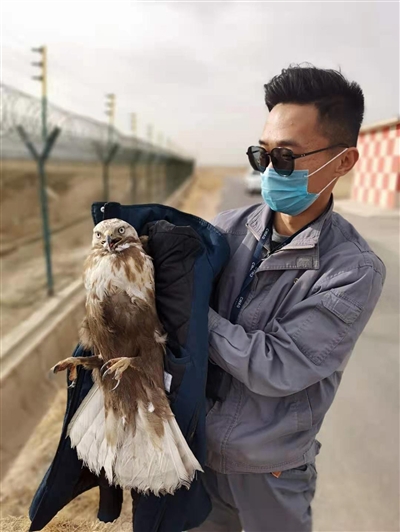 日前,一只受傷的大鵟因體力不支不慎“降落”西寧機場飛行區(qū),正當(dāng)它無助之時,被青海機場公司的驅(qū)鳥員發(fā)現(xiàn),最終在驅(qū)鳥員的救助下,受傷的大鵟被移交至青海野生動物救護中心(西寧野生動物園)進行治療。