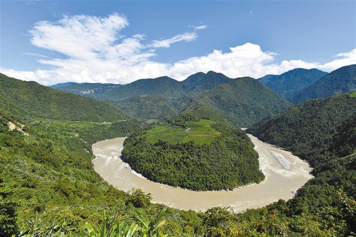 圖為西藏林芝市墨脫縣境內(nèi)的雅魯藏布江果果塘大拐彎。新華社記者 覺(jué)果 攝