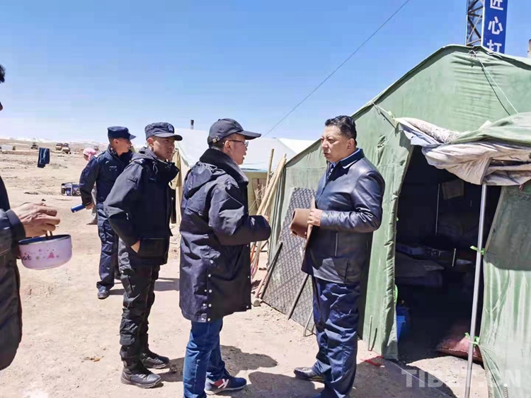 圖為麻多鄉(xiāng)黨委書記(右一)在源頭保護站調(diào)研生態(tài)狀況 攝影:才仁當智