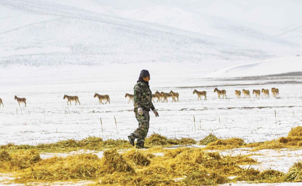 從戴上紅袖章那天開始,他就穿梭在山林、湖畔、河邊,有時撿拾垃圾,有時關注野生動物的蹤跡,默默守護這片家鄉(xiāng)的草場、湖泊、高山。在一次巡護中,切保和隊友們發(fā)現(xiàn)由于季節(jié)的變化,導致黑頸鶴等野生動物的巢穴被淹,給它們的生產棲息帶來了影響。于是,他和其他生態(tài)管護員為黑頸鶴等野生動物修巢筑窩12個。“不讓垃圾污染草場、污染動植物的水源地”是每一位管護員的共同想法。