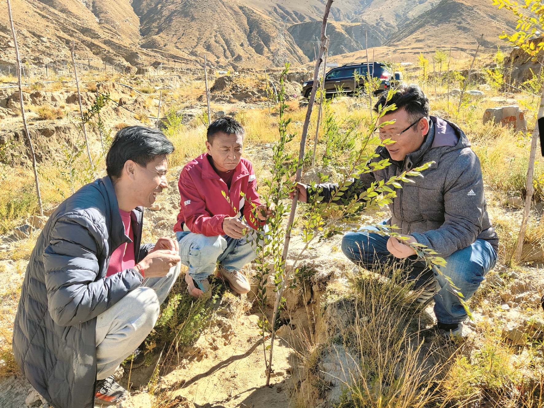 曲水縣林業(yè)和草原局工作人員米瑪次仁介紹道:“近年來,我們曲水縣總共實施人工造林2100公頃,防沙治3600公頃,‘四旁’植樹1500公頃,全民義務植樹350公頃,主要栽種的是我們當地的細葉紅柳、江孜沙棘、光核桃等,這些項目的實施,不僅為我們曲水縣建設生態(tài)宜居的美麗家園起到一個生態(tài)效益作用,同時為我們鞏固脫貧攻堅,為當地農民群眾增收起到很好的社會效應。”