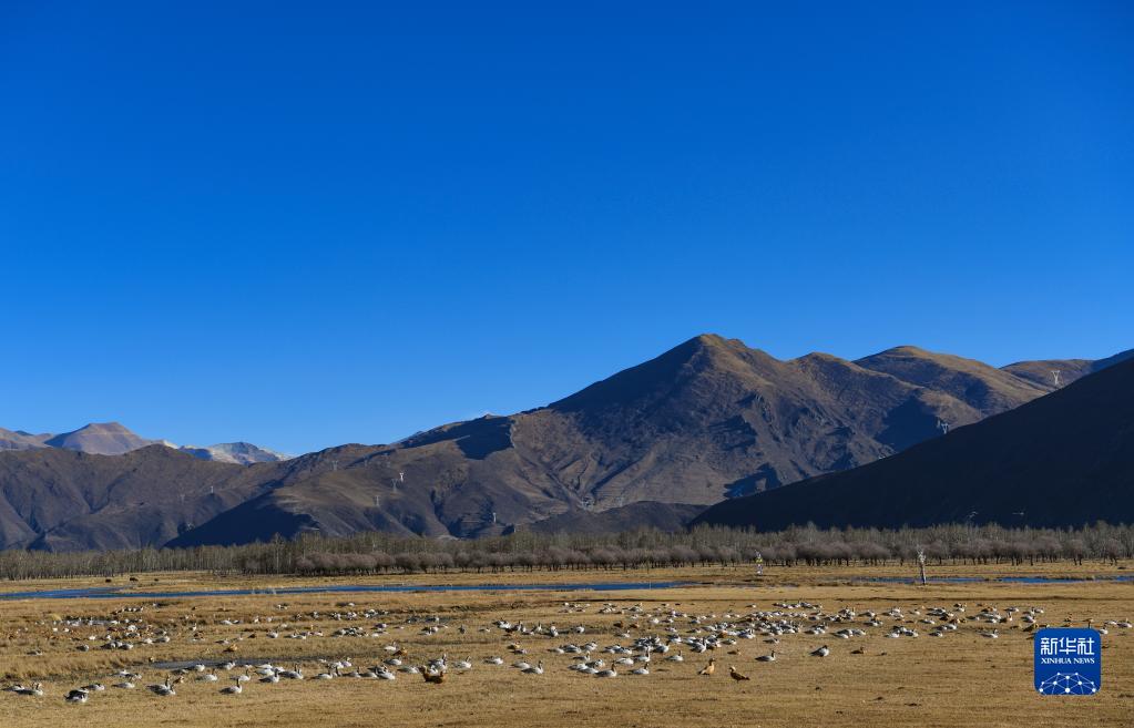 唐嘎鄉(xiāng)位于拉薩市達孜區(qū)東北部,這里每年冬季都會迎來黑頸鶴、斑頭雁、赤麻鴨等候鳥。這些在此越冬的“客人”和周邊的田園、濕地共同構(gòu)成高原冬季美景。