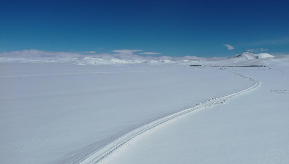 1月27日,當雄縣龍仁鄉(xiāng)烏達村牧民在雪中放牧。當雄縣位于西藏自治區(qū)拉薩市北部,距拉薩市區(qū)170公里?!爱斝邸保卣Z意為“天選牧場”,平均海拔約4200米,草場廣闊,土地肥沃。(無人機照片) 中新社記者 貢嘎來松 攝
