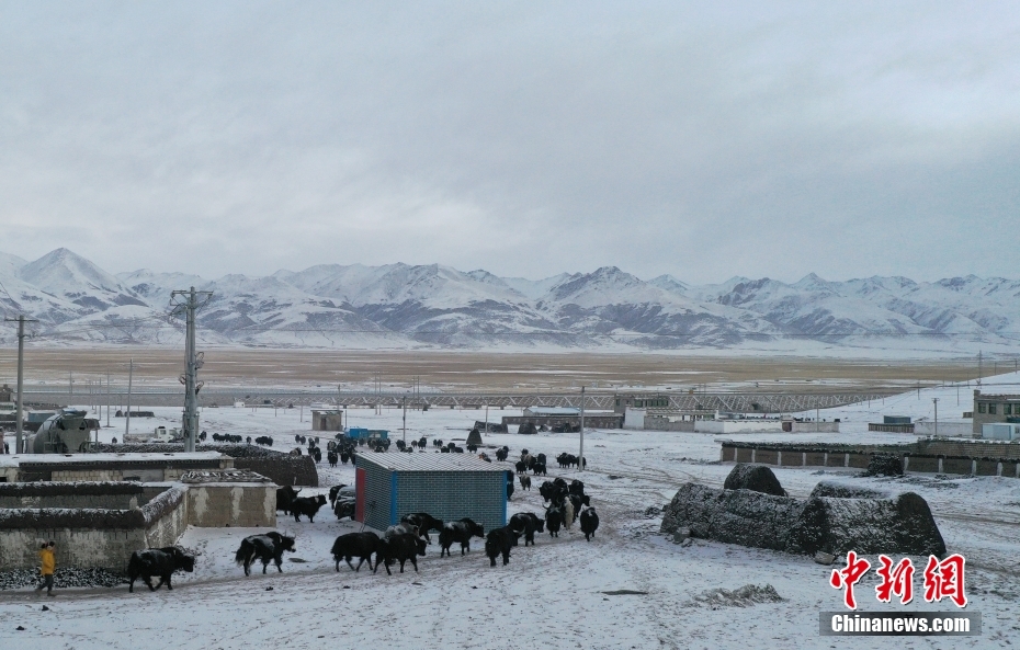 1月27日,當雄縣龍仁鄉(xiāng)烏達村牧民趕著牛羊去牧場。當雄縣位于西藏自治區(qū)拉薩市北部,距拉薩市區(qū)170公里?!爱斝邸?,藏語意為“天選牧場”,平均海拔約4200米,草場廣闊,土地肥沃。(無人機照片) 中新社記者 貢嘎來松 攝