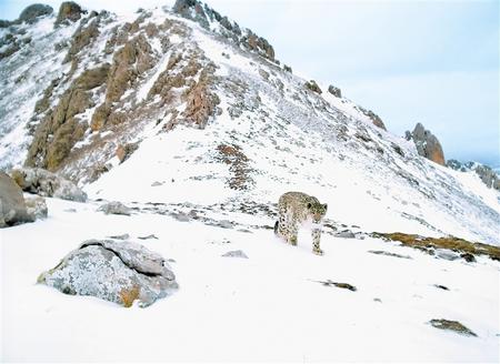 紅外線相機監(jiān)測到的國家一級保護動物雪豹。(甘南州生態(tài)環(huán)境局供圖)