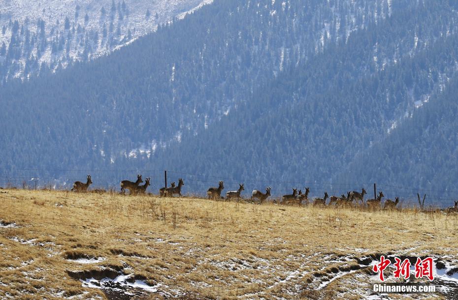 3月16日,成群的矮鹿在青海省海北藏族自治州祁連山國(guó)家公園青海片區(qū)草場(chǎng)上嬉戲。祁連山國(guó)家公園地處中國(guó)青海、甘肅兩省交界,總面積5.02萬(wàn)平方千米,其中青海片區(qū)1.58萬(wàn)平方千米。近年來(lái),隨著當(dāng)?shù)厣鷳B(tài)環(huán)境持續(xù)改善,祁連山國(guó)家公園青海片區(qū)珍稀野生動(dòng)物種群數(shù)量不斷增加。 中新社記者 馬銘言 攝