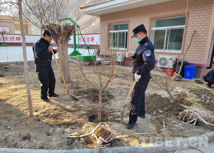 勞動(dòng)中,該執(zhí)勤點(diǎn)民警積極參與,從挖坑到樹苗的排列、扶正、培土、踩實(shí)、澆水各個(gè)環(huán)節(jié)分工到位,呈現(xiàn)出一派熱火朝天的植樹景象。