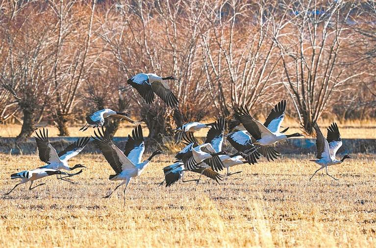 雅魯藏布江中游河谷黑頸鶴自然保護(hù)區(qū),是西藏“一江兩河”流域以國家一級(jí)保護(hù)動(dòng)物黑頸鶴為主要保護(hù)對(duì)象的國家級(jí)自然保護(hù)區(qū)。日喀則市拉孜縣到南木林縣之間的雅魯藏布江中上游河谷,是黑頸鶴越冬棲息最為集中的區(qū)域之一。據(jù)最新調(diào)查統(tǒng)計(jì),在日喀則市境內(nèi)越冬的黑頸鶴成鳥數(shù)8400余只,比保護(hù)區(qū)建立初期數(shù)量增長了3000余只。