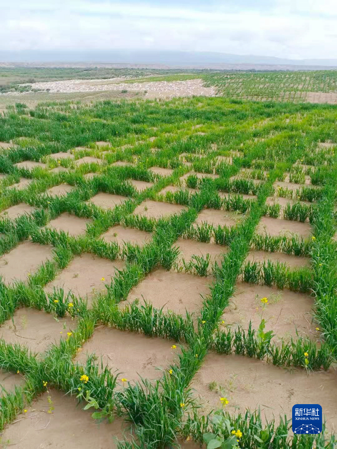 “2018年以來,我們積極開展治沙新材料試驗(yàn)研究,利用小麥、青稞、燕麥、披堿草等生物材料開展活沙障設(shè)置試驗(yàn)。現(xiàn)在四種生物沙障當(dāng)年成活率可達(dá)到95%,起到良好的固沙作用。”趙雪彬說。