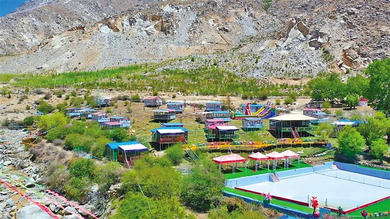 拉薩的夏天,是林卡的季節(jié)。進(jìn)入夏季以來,前來維巴村林卡游玩的市民絡(luò)繹不絕,一派熱鬧景象。走進(jìn)這些林卡,綠樹掩映、流水潺潺、鮮花開放、溫度宜人,一頂頂帳篷散落在小溪邊更顯詩意,帳篷旁寬敞干凈的游泳池在陽光的照耀下泛著點(diǎn)點(diǎn)金光,人們漫步草地上悠閑地賞景,享受著夏日里的清涼。目前,維巴村共有25家大大小小的林卡,其中不乏網(wǎng)紅林卡,一到節(jié)假日林卡里就會(huì)出現(xiàn)火爆的場面。