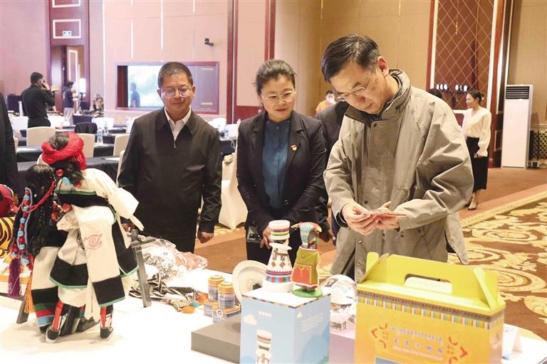 參觀人員觀看旅游文創(chuàng)產品。文/圖 記者 張琳