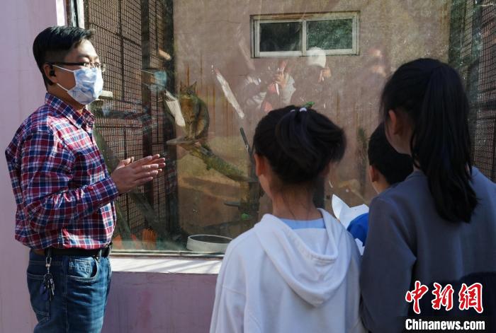 圖為青海野生動(dòng)物救護(hù)繁育中心副主任向?qū)W生介紹荒漠貓?!●R銘言 攝