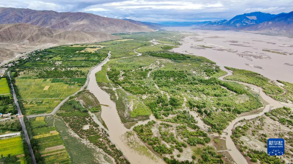 這是雅魯藏布江山南段公路兩旁的綠色長(zhǎng)廊(2021年7月20日攝,無人機(jī)照片)。新華社記者 晉美多吉 攝