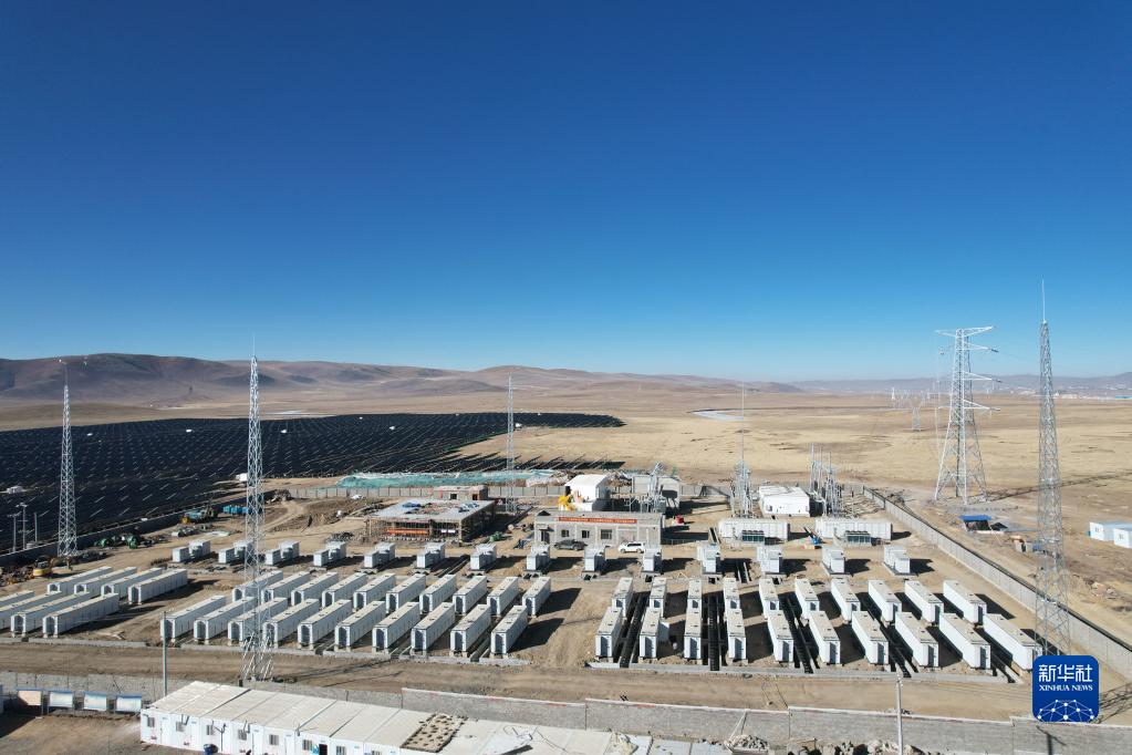在平均海拔約4500米的西藏自治區(qū)那曲市色尼區(qū),寒風(fēng)呼嘯,工人們干勁十足。藍(lán)天白云下,陽(yáng)光灑在一排排光伏板上,儲(chǔ)能系統(tǒng)與電網(wǎng)塔基開(kāi)始送電,成為藏北草原的“活力動(dòng)能”。