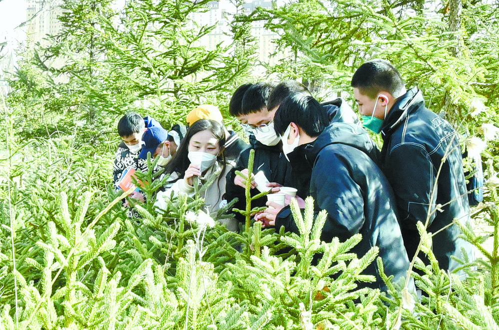 園區(qū)徒步收集植物種子。記者 李娜 魏雅琪 攝