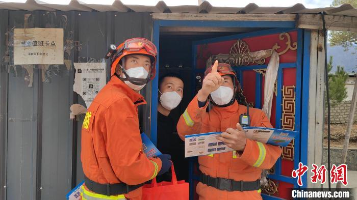 圖為森林消防員在景區(qū)重點(diǎn)區(qū)域普及防火知識(shí)?!×种ナ猩窒拦﹫D