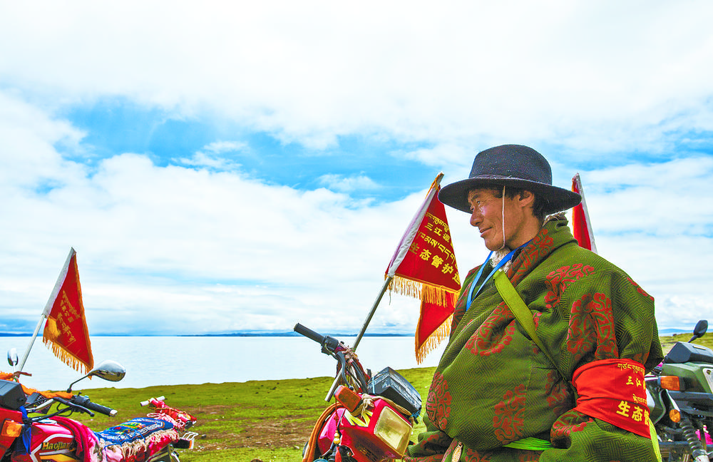 作為三江源國家公園的一名生態(tài)管護(hù)員,尼瑪扎西每天在放牧自家牛羊的同時(shí),也承擔(dān)撿拾垃圾、巡護(hù)湖泊草場、巡查和保護(hù)野生動物等職責(zé)。