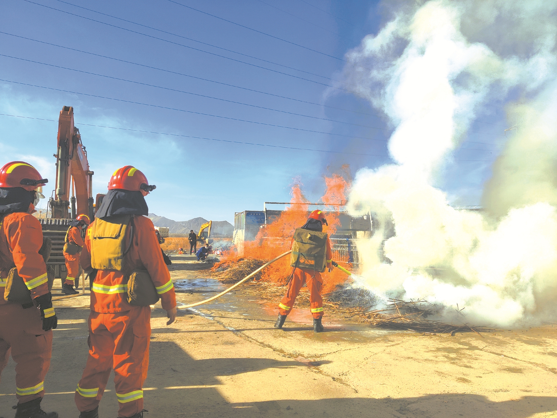 圖為消防演練現(xiàn)場。拉薩融媒記者 余洋洋攝