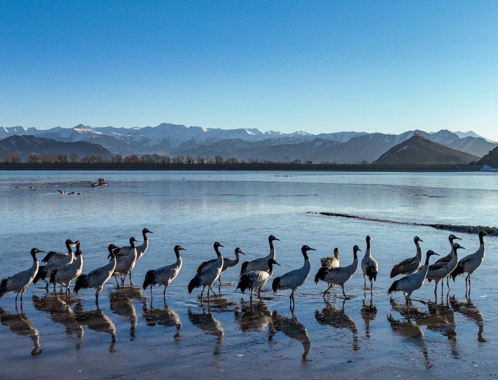 黑頸鶴是國家一級(jí)保護(hù)動(dòng)物,主要棲息在海拔2500米至5000米的高原、草甸、沼澤地帶。拉薩北部的林周縣平均海拔約4200米,是黑頸鶴的主要越冬地之一。
