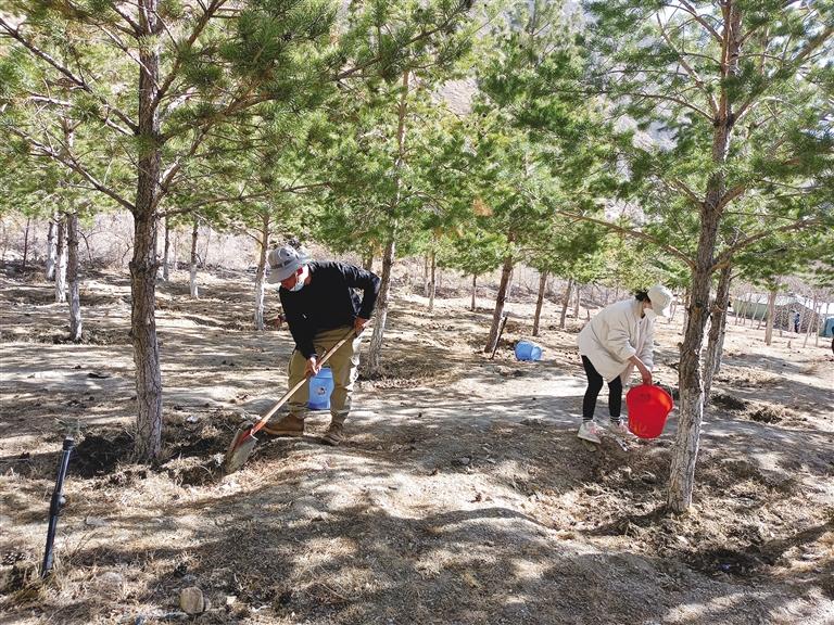 春風(fēng)送暖,高原吐綠。近日,拉薩市林草局組織多家單位在北山生態(tài)修復(fù)造林點(diǎn)開(kāi)展幼林撫育活動(dòng)。