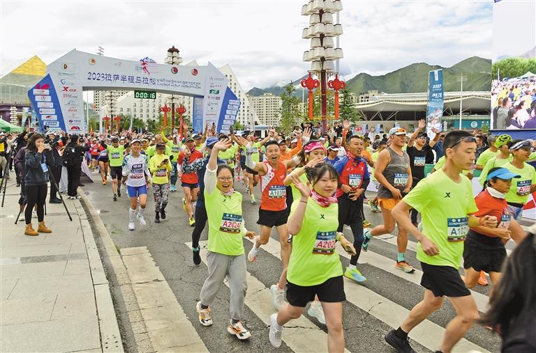8月27日,2023拉薩半程馬拉松在拉薩市鳴槍開跑。賽事設(shè)置半程馬拉松、競(jìng)速跑(10.520公里)、健康跑(5公里)三個(gè)組別。來自全國各地的約4000名馬拉松愛好者參加比賽。經(jīng)過激烈角逐,索朗才仁和次仁措姆分別以1小時(shí)10分3秒和1小時(shí)23分48秒的成績(jī)撞線,雙雙衛(wèi)冕男、女子組半程馬拉松冠軍。