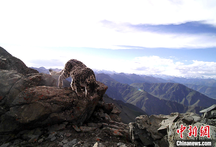 圖為7月16日,西藏拉薩市堆龍德慶區(qū)“乃朗谷雪豹重要棲息地”內(nèi)紅外線相機拍攝到的雪豹。 中新社發(fā) 山水自然保護中心 供圖