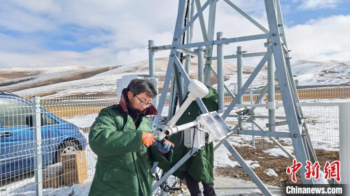 10月26日,技術(shù)人員在調(diào)試通信系統(tǒng)。(青海省氣象局 供圖)