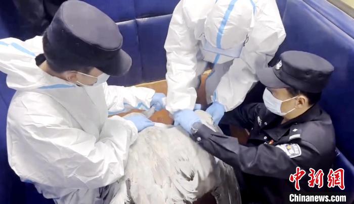 圖為民警和瑪可河林業(yè)局工作人員對灰鶴進(jìn)行詳細(xì)檢查。 曹民鍇 供圖