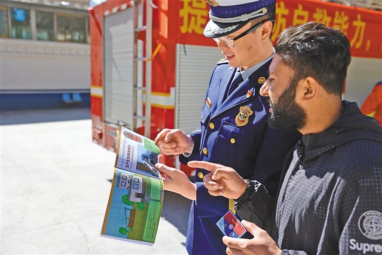活動(dòng)向入境外籍游客和商人發(fā)放了中文、英文、藏文三種語言的消防宣傳資料,用英語向外籍游客和商人講解、演示滅火器材使用方法、常見火災(zāi)預(yù)防措施、火場逃生和急救常識等,并組織干粉滅火器實(shí)操、液化石油氣火災(zāi)處置和疏散逃生演練。