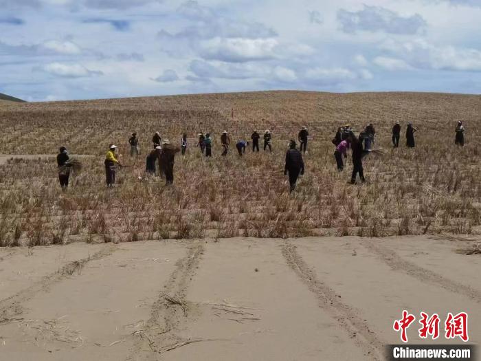 圖為牧民與企業(yè)工作人員參與阿尼瑪卿水源涵養(yǎng)與草原生態(tài)保護(hù)修復(fù)項(xiàng)目?!」逯莠斍呖h自然資源和林業(yè)草原局 供圖