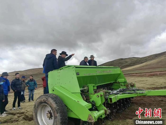 圖為官方檢查試驗(yàn)田草種子發(fā)芽情況。果洛州瑪沁縣自然資源和林業(yè)草原局 供圖