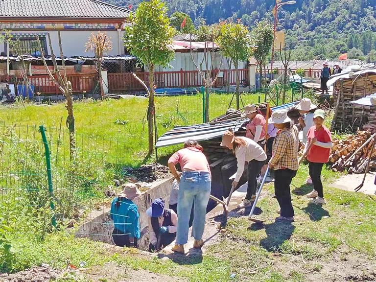 圖為林芝市墨脫縣格當(dāng)鄉(xiāng)多龍崗村群眾自發(fā)清理河道排水渠。記者 王敏 通訊員 郎玲 攝