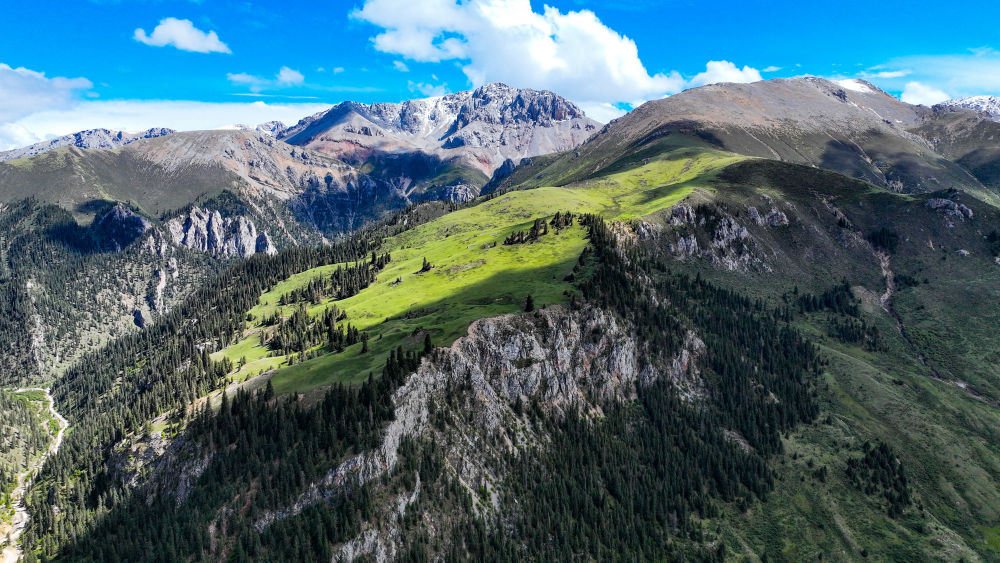 這是2023年6月18日在青海省玉樹藏族自治州囊謙縣拍攝的風(fēng)光(無(wú)人機(jī)照片)。新華社記者 張龍 攝