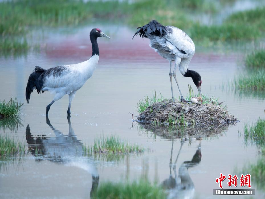 6月16日,在海拔4700米的西藏那曲市申扎縣,經過34天的漫長孵化期,一對黑頸鶴夫婦終于等來了自己的小黑頸鶴成功破殼出生。值得一提的是,黑頸鶴寶寶的誕生日也是2024年的父親節(jié),黑頸鶴父親在節(jié)日當天喜獲最珍貴的禮物。據悉,黑頸鶴每窩通常產卵1-2枚,孵化期通常要33到35天。中新社記者 貢嘎來松 攝