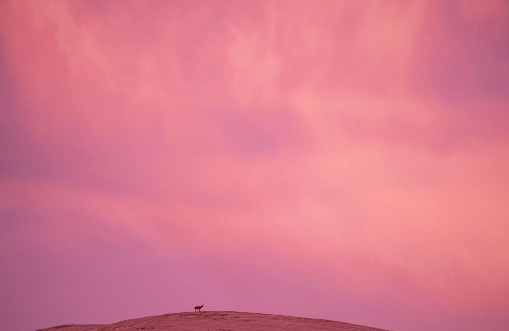6月15日清晨雪后,在羌塘國家級(jí)自然保護(hù)區(qū),一只母藏羚羊站在山頂瞭望。