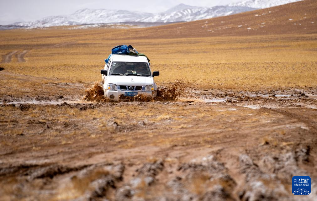 5月10日,野生動(dòng)物專(zhuān)業(yè)管護(hù)隊(duì)員的車(chē)子在巡護(hù)路上穿越泥濘路段。新華社記者 姜帆 攝