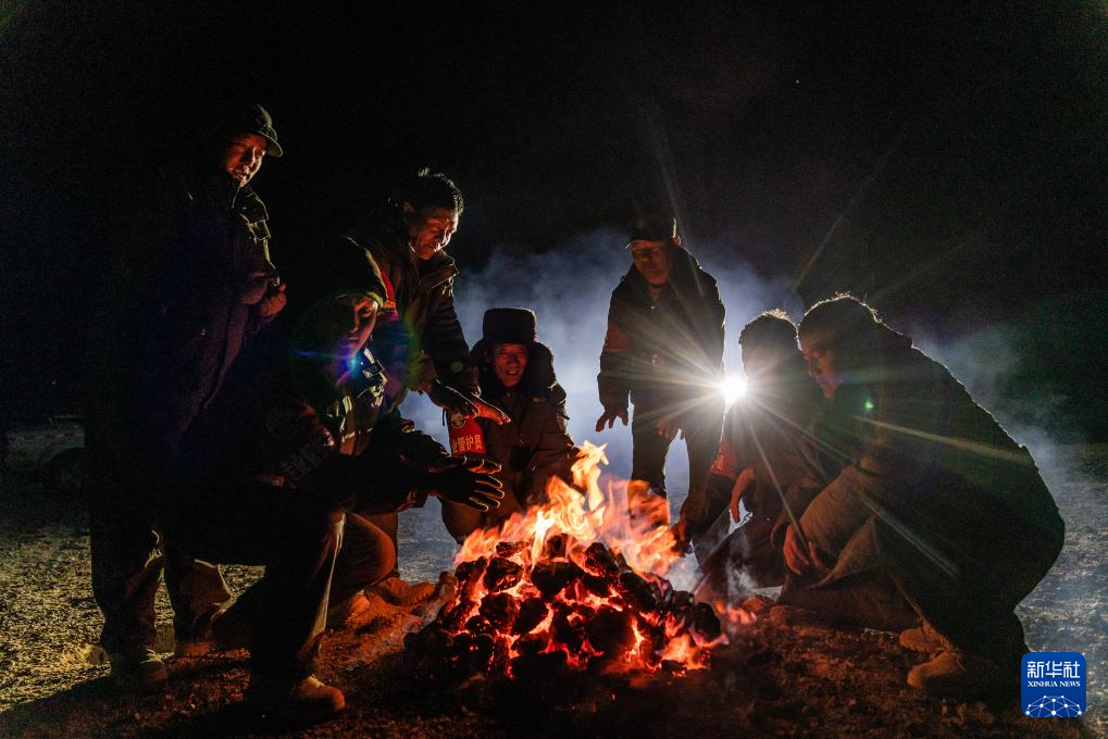 5月10日,野生動(dòng)物專(zhuān)業(yè)管護(hù)隊(duì)員在宿營(yíng)地用野牦牛糞烤火取暖。新華社記者 丁增尼達(dá) 攝