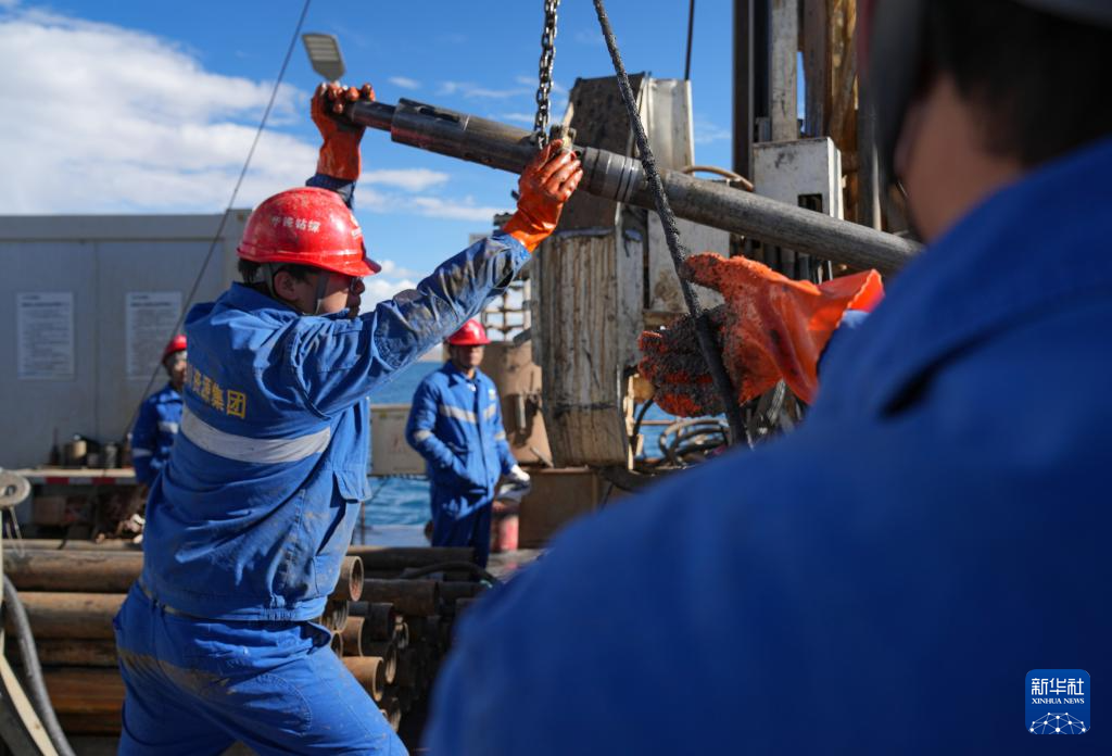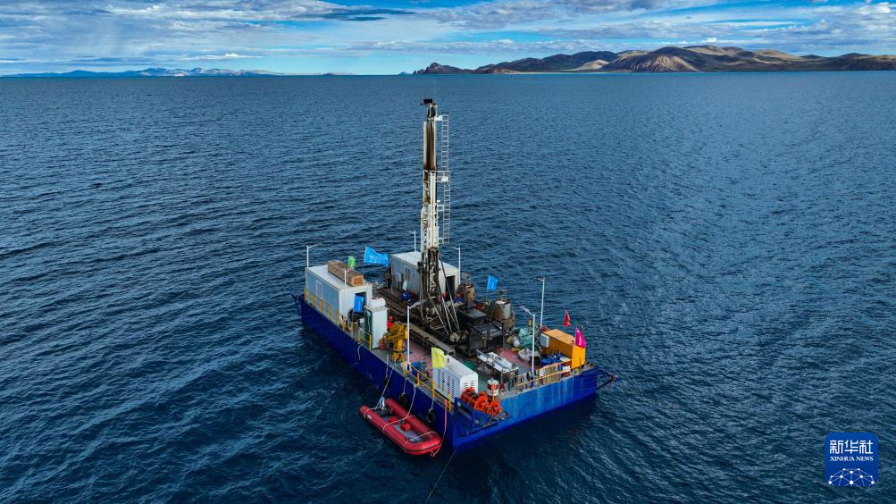 在海拔超過4700米的西藏納木錯,湖泊巖芯鉆探工作正在開展中。