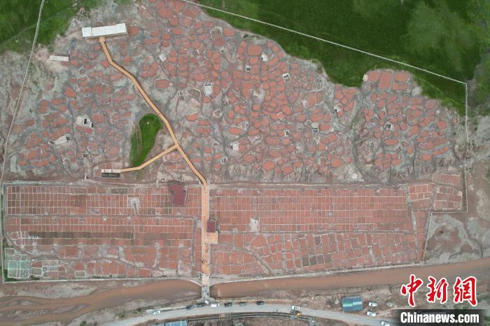 圖為航拍囊謙縣白扎鹽場(chǎng),大大小小褐色鹽畦形如水田。祁妙攝